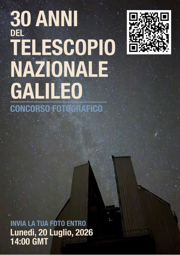 La Fundación Galileo Galilei – INAF, un’organizzazione senza scopo di lucro responsabile della gestione del Telescopio Nazionale Galileo (TNG) presso il Roque de los Muchachos a La Palma, annuncia due concorsi, uno letterario ed uno fotografico, per celebrare il 30° anniversario dell’inaugurazione del telescopio italiano.